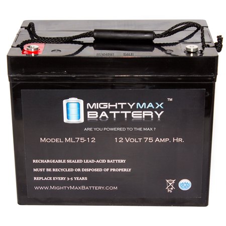 <div> Delivering power when you need it, the Mighty Max ML75-12 Internal Thread 12 Volt 75 AH uses a state of the art, heavy-duty, calcium-alloy grid that provides exceptional performance and service life in both float and cyclic applications. </div> <div> <br /> </div> <div> The ML75-12 Internal Thread is an Absorbent Glass Mat (AGM) technology with a valve regulated design, that can be used in enclosed and indoor environments without leaking or maintenance, providing a superior performance for thousands of models. </div> <div> <br /> </div> <div> Mighty Max SLA batteries are utilized in a wide variety of applications including; Consumer Electronics, Electric Vehicles, Engine Starters, Golf Carts, Hunting, Lawn and Garden Tools, Medical Mobility, Motorcycles, Power sports, Portable Tools, Solar, Toys and Hobby, Access Control Devices, Emergency Lighting, Security and more. </div> <div> <br /> </div> <div> <b>Specifications: </b> </div> <div> <br /> </div> <div> Voltage: 12 Volt </div> <div> <br /> </div> <div> Amperage: 75 AH </div> <div> <br /> </div> <div> Chemistry: SLA, AGM </div> <div> <br /> </div> <div> <b>Battery Dimensions: </b> </div> <div> <br /> </div> <div> 10.24 in x 6.61 in x 8.27 in </div> <div> <br /> </div> <div> Weight: 50.71 Lbs </div> <div> <br /> </div> <div> <b>Warranty</b> </div> <div> <br /> </div> <div> 1 Year </div>