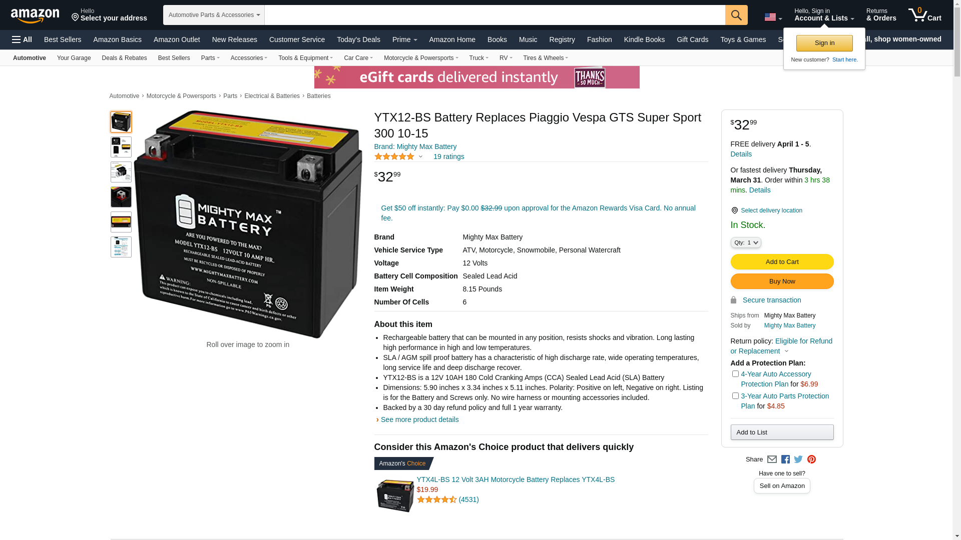 Mighty Max Battery YTX12-BS Battery Replaces Piaggio Vespa GTS Super Sport 300 10-15