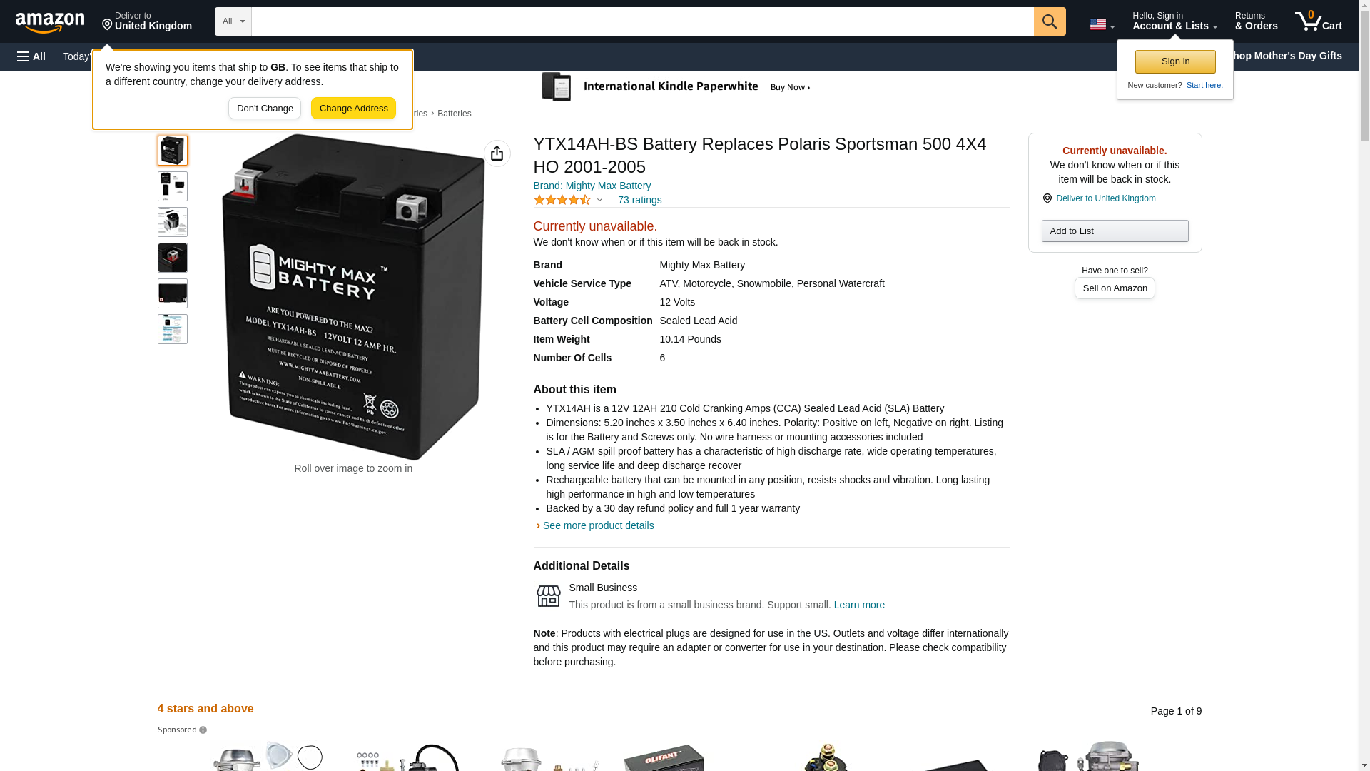 YTX14AH-BS Battery Replaces Polaris Sportsman 500 4X4 HO 2001-2005