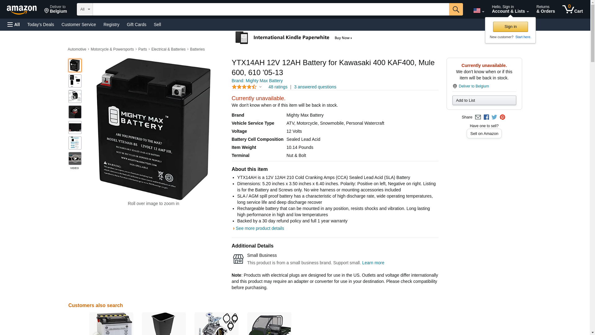 Mighty Max Battery YTX14AH 12V 12AH Battery for Kawasaki 400 KAF400, Mule 600, 610 '05-13