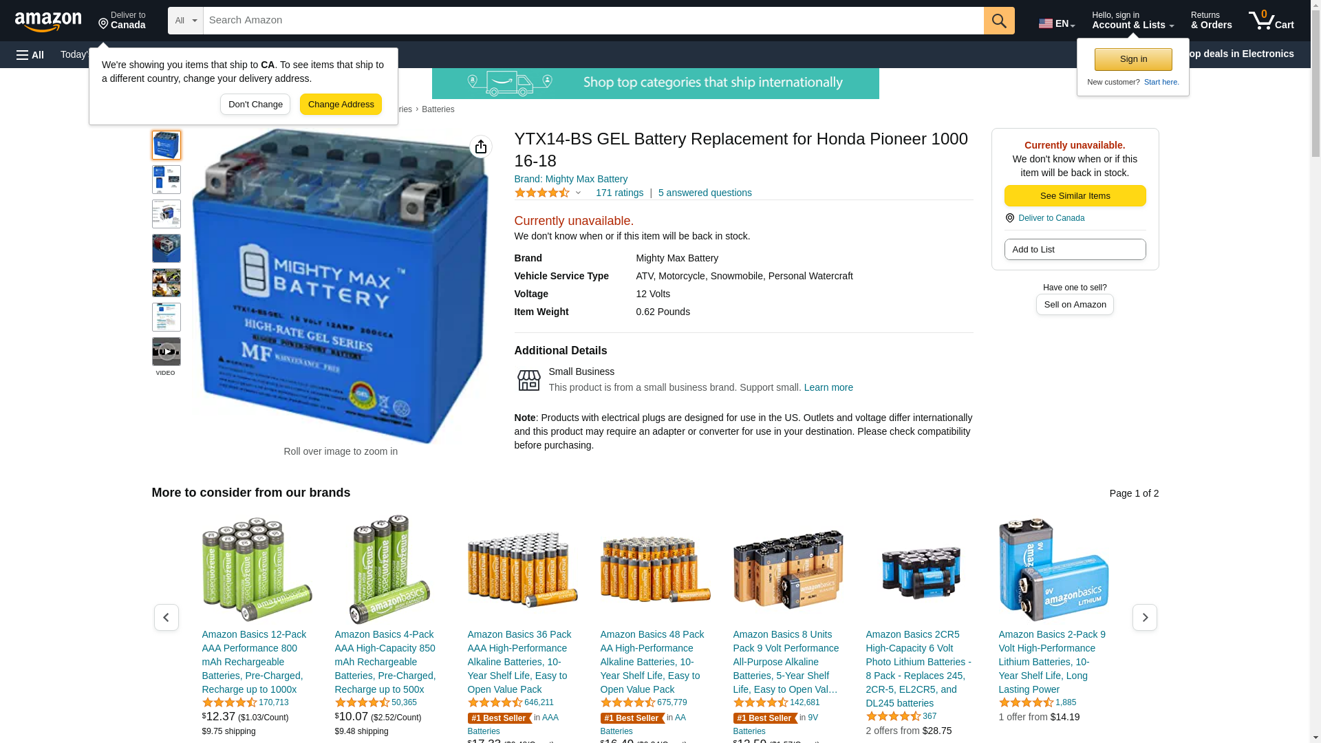 Mighty Max Battery YTX14-BS Gel Battery Replacement for Honda Pioneer 1000 16-18