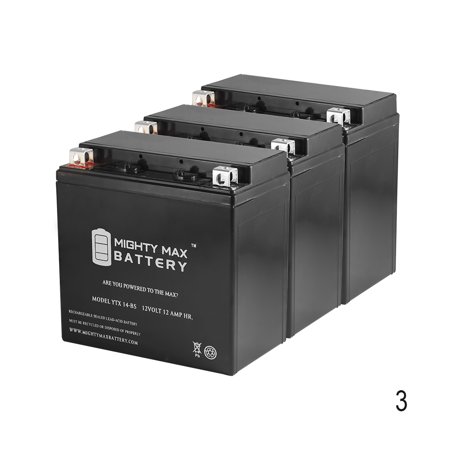 <div> This YTX14-BS is a sealed lead-acid (SLA) absorbed glass mat (AGM) rechargeable battery. AGM and GEL batteries are lead-acid and of the same battery chemistry. This battery comes already charged, sealed, maintenance free, and ready to install. </div> <div> <br /> </div> <div> Premium quality absorbed glass mat technology (AGM) is ideal for ATVs, Motorcycles, Personal Watercraft, Jet Ski's, Snowmobiles and more. </div> <div> <br /> </div> <div> <b>Specifications of the YTX14-BS Battery</b> </div> <div> <br /> </div> <div> Voltage: 12 Volt </div> <div> <br /> </div> <div> Amperage: 12 AH </div> <div> <br /> </div> <div> Chemistry: SLA, AGM </div> <div> <br /> </div> <div> Terminal: Nut & Bolt </div> <div> <br /> </div> <div> Quantity: 3 Batteries </div> <div> <br /> </div> <div> <b>Battery Dimensions:</b> </div> <div> <br /> </div> <div> 6.00 in x 3.44 in x 5.75 in </div> <div> <br /> </div> <div> Weight: 9.92 Lbs </div> <div> <br /> </div> <div> <b>Warranty</b> </div> <div> <br /> </div> <div> 1 Year </div>