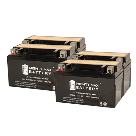 <div> This YTX7A-BS is a sealed lead-acid (SLA) absorbed glass mat (AGM) rechargeable battery. AGM and GEL batteries are lead-acid and of the same battery chemistry. This battery comes already charged, sealed, maintenance free, and ready to install. </div> <div> <br /> </div> <div> Premium quality absorbed glass mat technology (AGM) is ideal for ATVs, Motorcycles, Personal Watercraft, Jet Ski's, Snowmobiles and more. </div> <div> <br /> </div> <div> <b>Specifications of the YTX7A-BS Battery</b> </div> <div> <br /> </div> <div> Voltage: 12 Volt </div> <div> <br /> </div> <div> Amperage: 6 AH </div> <div> <br /> </div> <div> Chemistry: SLA, AGM </div> <div> <br /> </div> <div> Terminal: Nut & Bolt </div> <div> <br /> </div> <div> Quantity: 4 Batteries </div> <div> <br /> </div> <div> <b>Battery Dimensions: </b> </div> <div> <br /> </div> <div> 5.90 in x 3.38 in x 3.70 in </div> <div> <br /> </div> <div> Weight: 5.51 Lbs </div> <div> <br /> </div> <div> <b>Warranty</b> </div> <div> <br /> </div> <div> 1 Year </div>