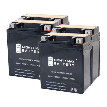 <div> This YTX7L-BS is a sealed lead-acid (SLA) absorbed glass mat (AGM) rechargeable battery. AGM and GEL batteries are lead-acid and of the same battery chemistry. This battery comes already charged, sealed, maintenance free, and ready to install. </div> <div> <br /> </div> <div> Premium quality absorbed glass mat technology (AGM) is ideal for ATVs, Motorcycles, Personal Watercraft, Jet Ski's, Snowmobiles and more. </div> <div> <br /> </div> <div> <b>Specifications of the YTX7L-BS Battery</b> </div> <div> <br /> </div> <div> Voltage: 12 Volt </div> <div> <br /> </div> <div> Amperage: 6 AH </div> <div> <br /> </div> <div> Chemistry: SLA, AGM </div> <div> <br /> </div> <div> Terminal: Nut & Bolt </div> <div> <br /> </div> <div> Quantity: 4 Batteries </div> <div> <br /> </div> <div> <b>Battery Dimensions: </b> </div> <div> <br /> </div> <div> 4.40 in x 2.75 in x 5.19 in </div> <div> <br /> </div> <div> Weight: 5.51 Lbs </div> <div> <br /> </div> <div> <b>Warranty</b> </div> <div> <br /> </div> <div> 1 Year </div>