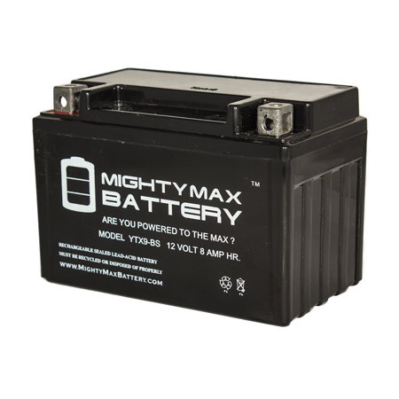 <div> This YTX9-BS is a sealed lead-acid (SLA) absorbed glass mat (AGM) rechargeable battery. AGM and GEL batteries are lead-acid and of the same battery chemistry. This battery comes already charged, sealed, maintenance free, and ready to install. </div> <div> <br /> </div> <div> Premium quality absorbed glass mat technology (AGM) is ideal for ATVs, Motorcycles, Personal Watercraft, Jet Ski's, Snowmobiles and more. </div> <div> <br /> </div> <div> <b>Specifications of the YTX9-BS Battery</b> </div> <div> <br /> </div> <div> Voltage: 12 Volt </div> <div> <br /> </div> <div> Amperage: 8 AH </div> <div> <br /> </div> <div> Chemistry: SLA, AGM </div> <div> <br /> </div> <div> Terminal: Nut & Bolt </div> <div> <br /> </div> <div> <b>Battery Dimensions: </b> </div> <div> <br /> </div> <div> 5.90 in x 3.38 in x 4.25 in </div> <div> <br /> </div> <div> Weight: 6.72 Lbs </div> <div> <br /> </div> <div> <b>Warranty</b> </div> <div> <br /> </div> <div> 1 Year </div>