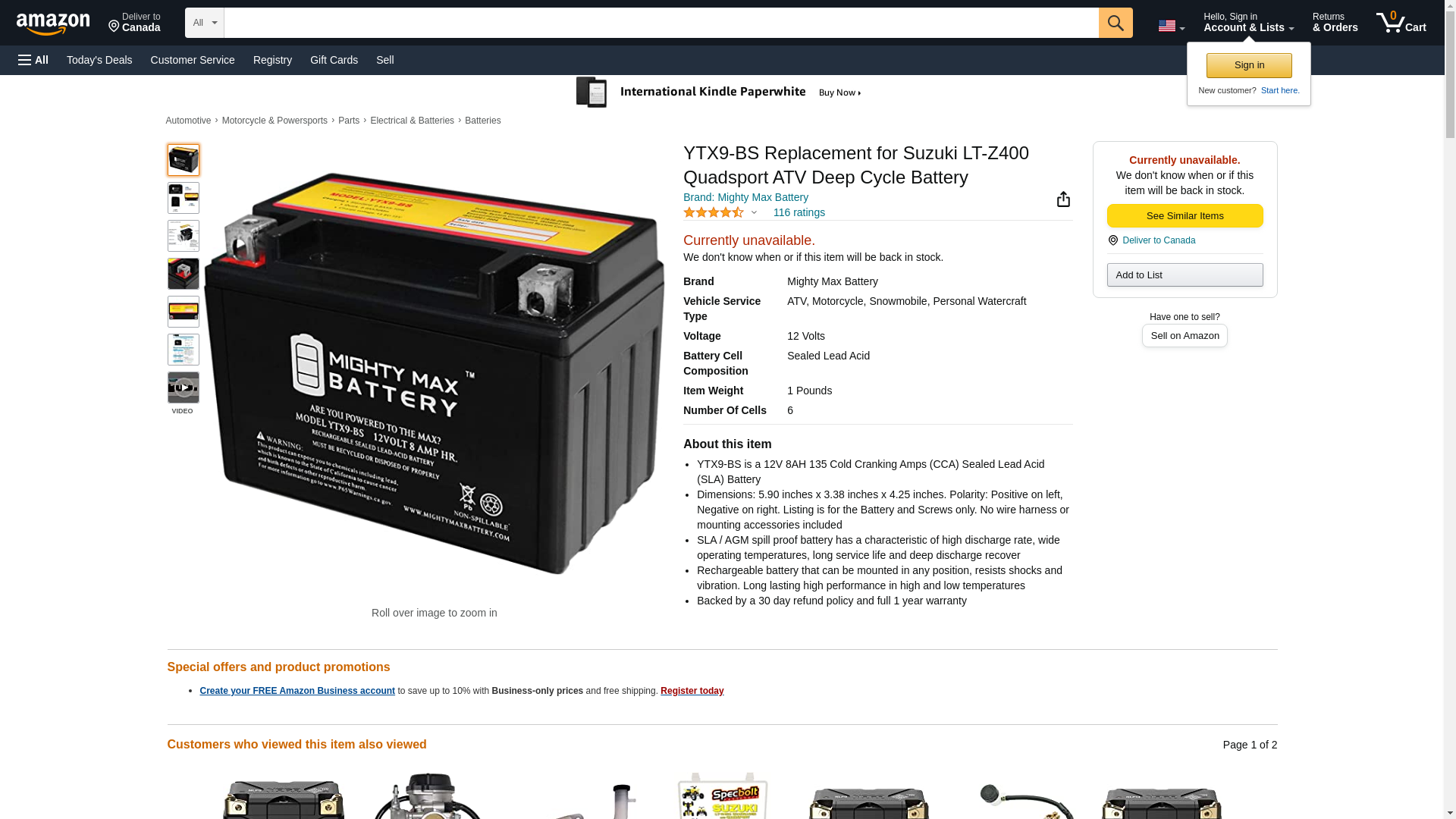 Mighty Max Battery YTX9-BS Replacement for Suzuki LT-Z400 Quadsport ATV Deep Cycle Battery