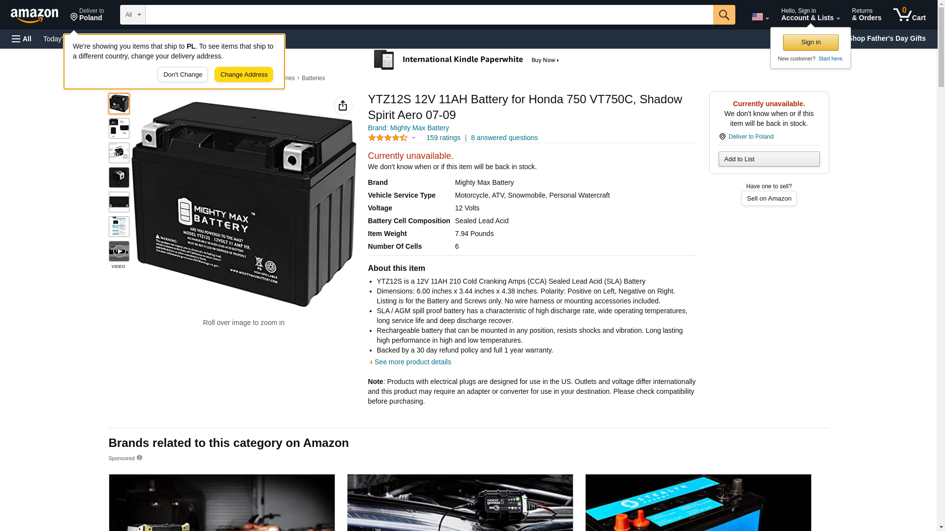 Mighty Max Battery YTZ12S 12V 11AH Battery for Honda 750 VT750C, Shadow Spirit Aero 07-09