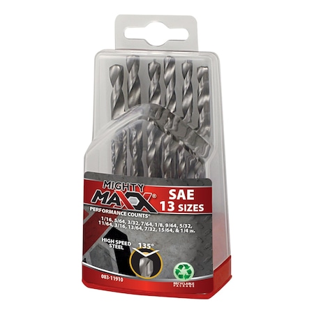 As an Amazon Associate, we earn from qualifying purchases. Mighty Maxx Mighty Maxx . 083-11910 Gallery Attributes Brand name, Manufacturer name, Manufacturer, Extra Product NameMighty Maxx Attribute00, countryOfOriginChina AttributeKey00Country of Origin (subject to change) DimensionUnitinch GraingerSku, MPN083-11910 UPC856224119109 WeightUnitlbs extendedLead8 extendedQty, qtyInStockOverride-2 jsonUrlData924526ffbdad25e5923b moq, multiple, tierMinQty11 qtyInStock0 SKUG904105693 tierPrice18.82 urlhttps://www.zoro.com/mighty-maxx-drill-bit-set-13pc-116in-14in-083-11910/i/G904105693/ Distributor offers SellerSKUMOQIn stockMultiplePrices ZoroG904105693111 @ $8.82