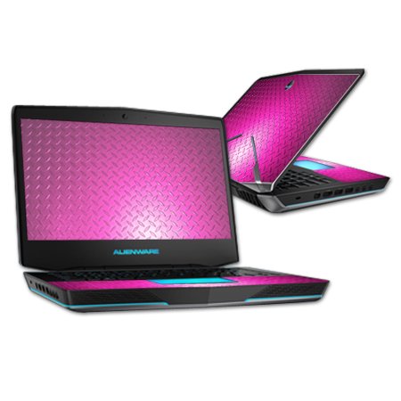 MightySkins Protective Skin Decal Cover for Alienware 14" (Released 2013) Gaming Laptop wrap sticker skins Pink Diamond Plate