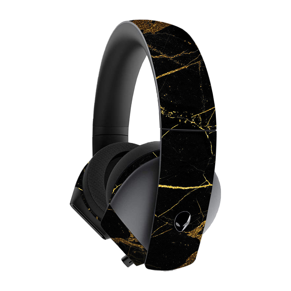 MightySkins ALW71GH-Black Gold Marble Skin for Alienware 7.1 Gaming Headset - Black Gold Marble