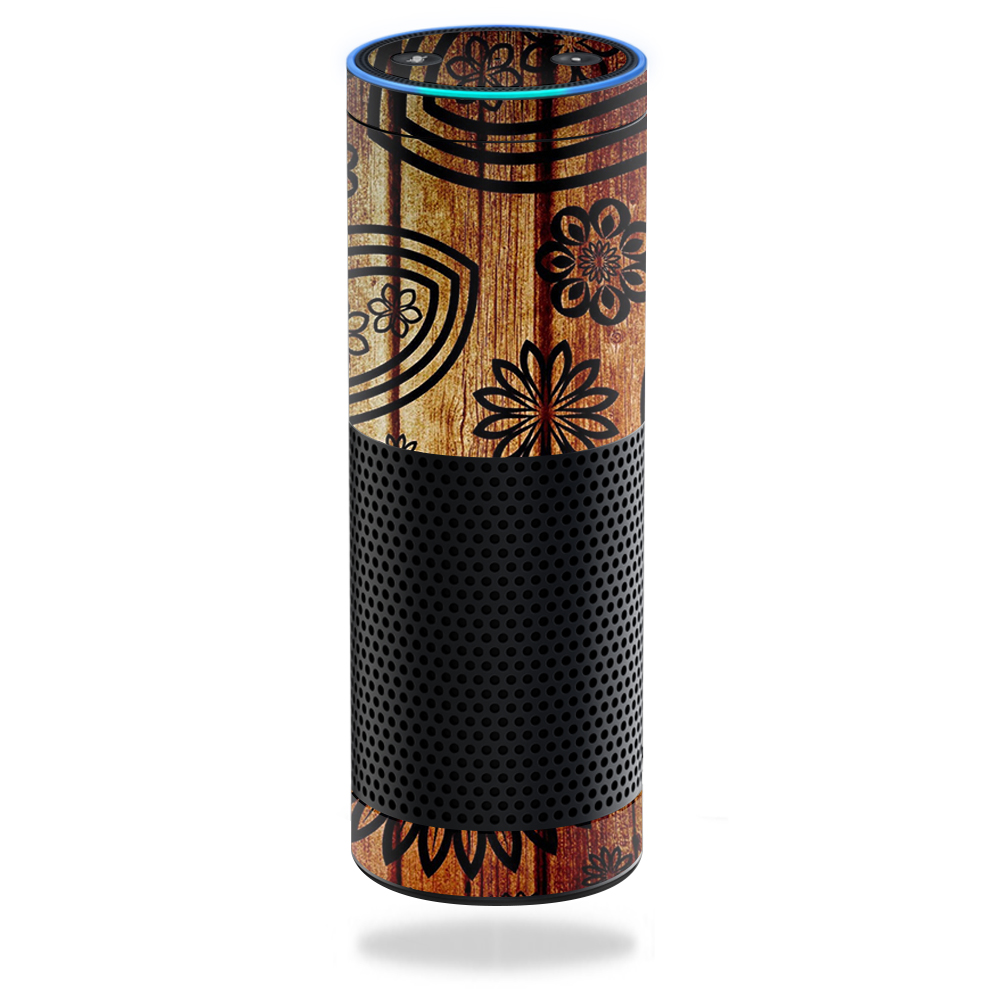 MightySkins AMECHO-Wooden Floral Skin Decal Wrap for Amazon Echo - Wooden Floral