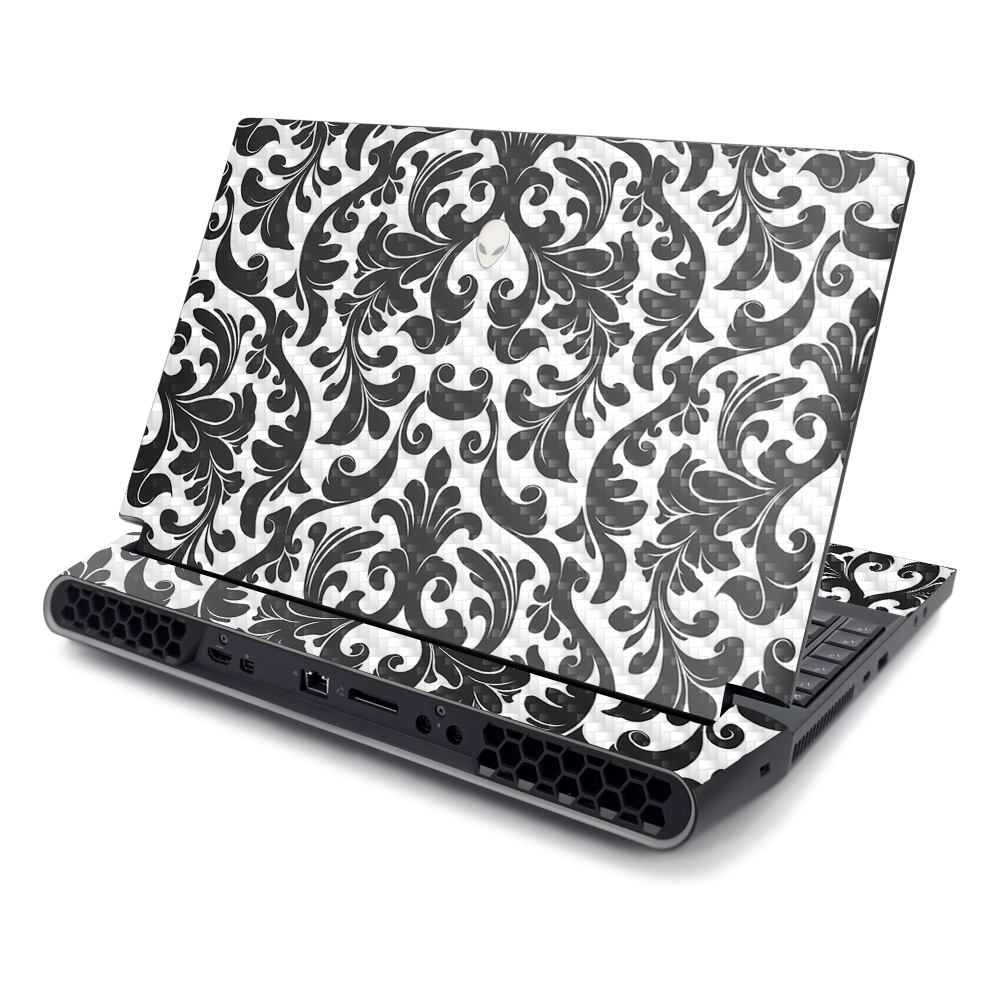 MightySkins CF-ALWAR51R220-Black Damask Carbon Fiber Skin for Alienware AREA-51M R2 2020 - Black Damask