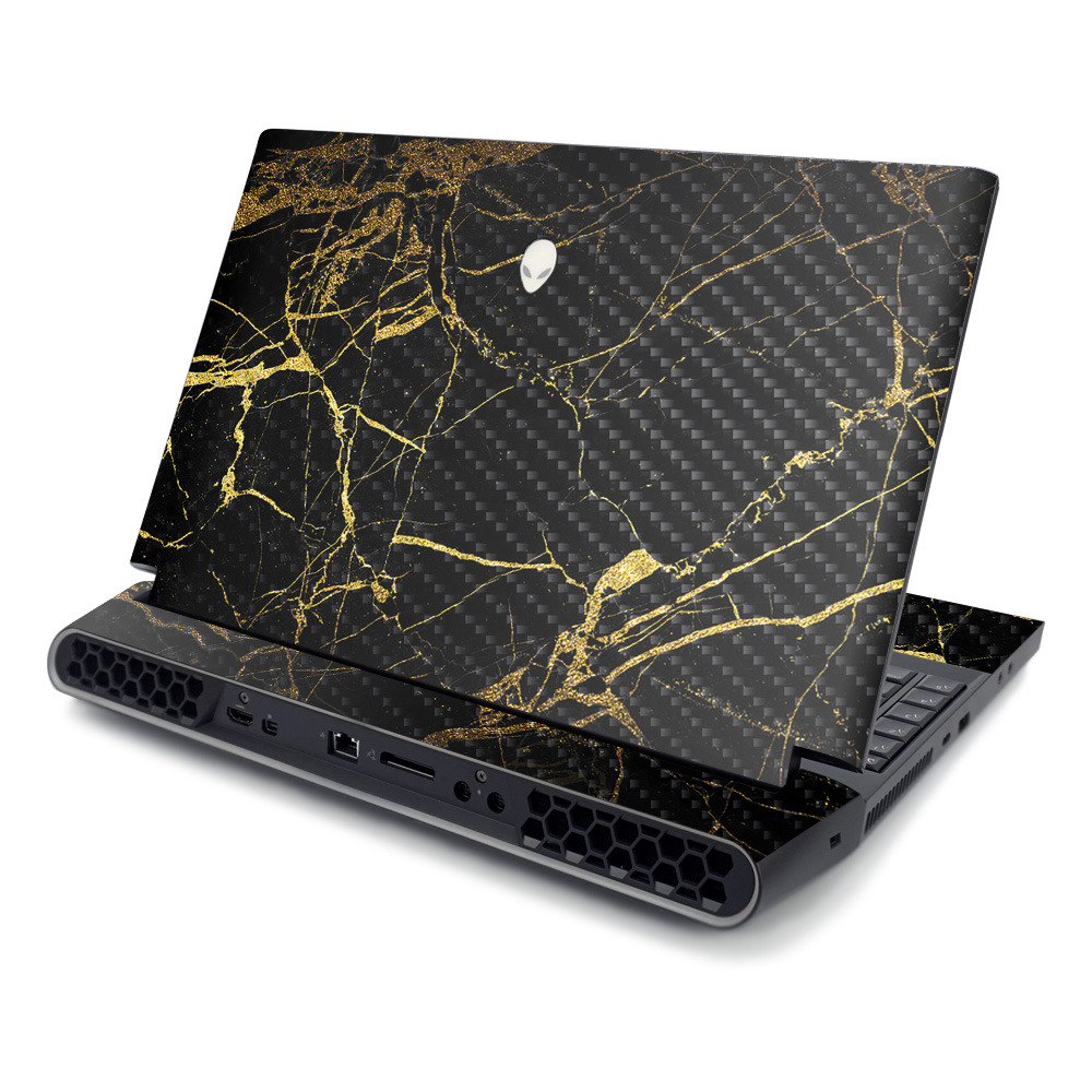 MightySkins CF-ALWAR51R220-Black Gold Marble Carbon Fiber Skin for Alienware AREA-51M R2 2020 - Black Gold Marble