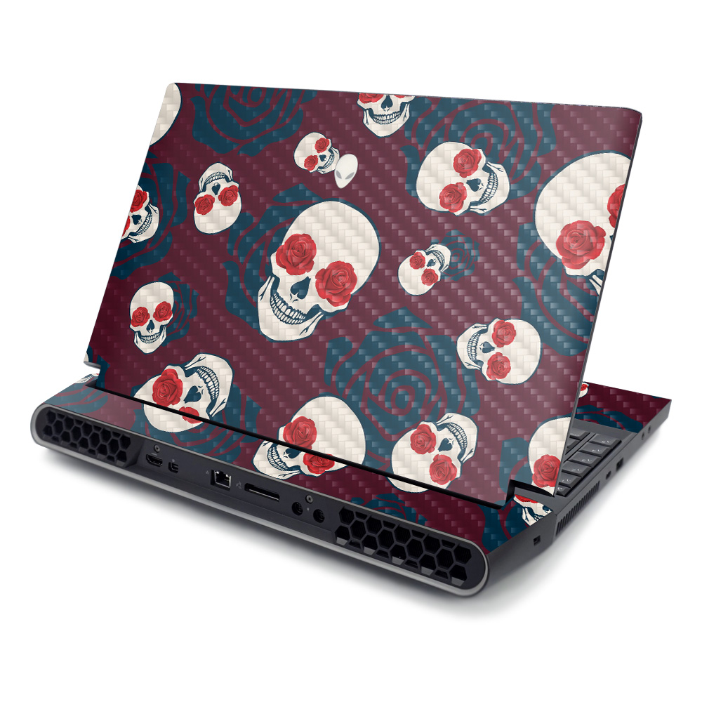 MightySkins CF-ALWAR51R220-Skulls N Roses Carbon Fiber Skin for Alienware AREA-51M R2 2020 - Skulls N Roses