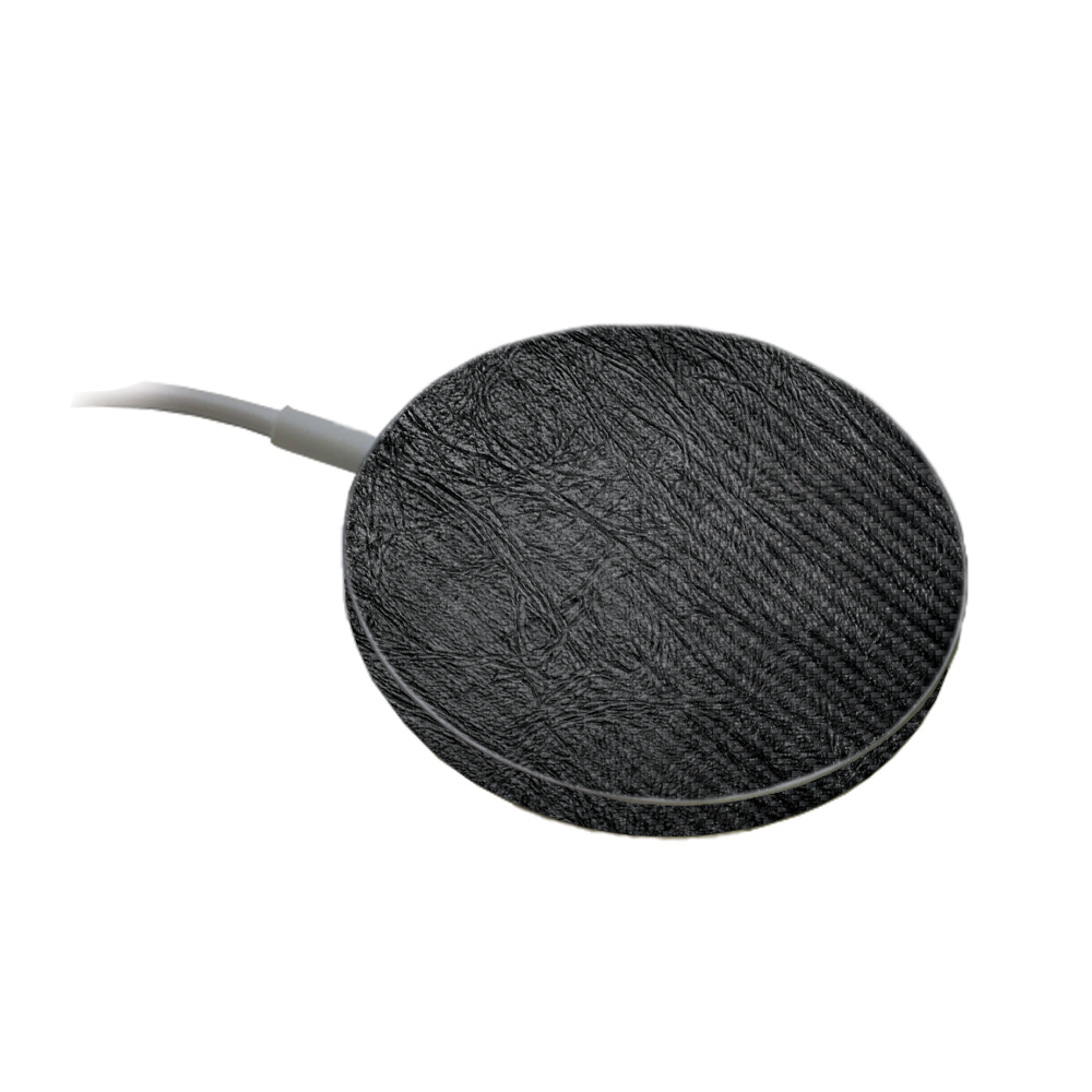 MightySkins CF-APMACH-Black Leather Carbon Fiber Skin Compatible with Apple MagSafe Charger - Black Leather