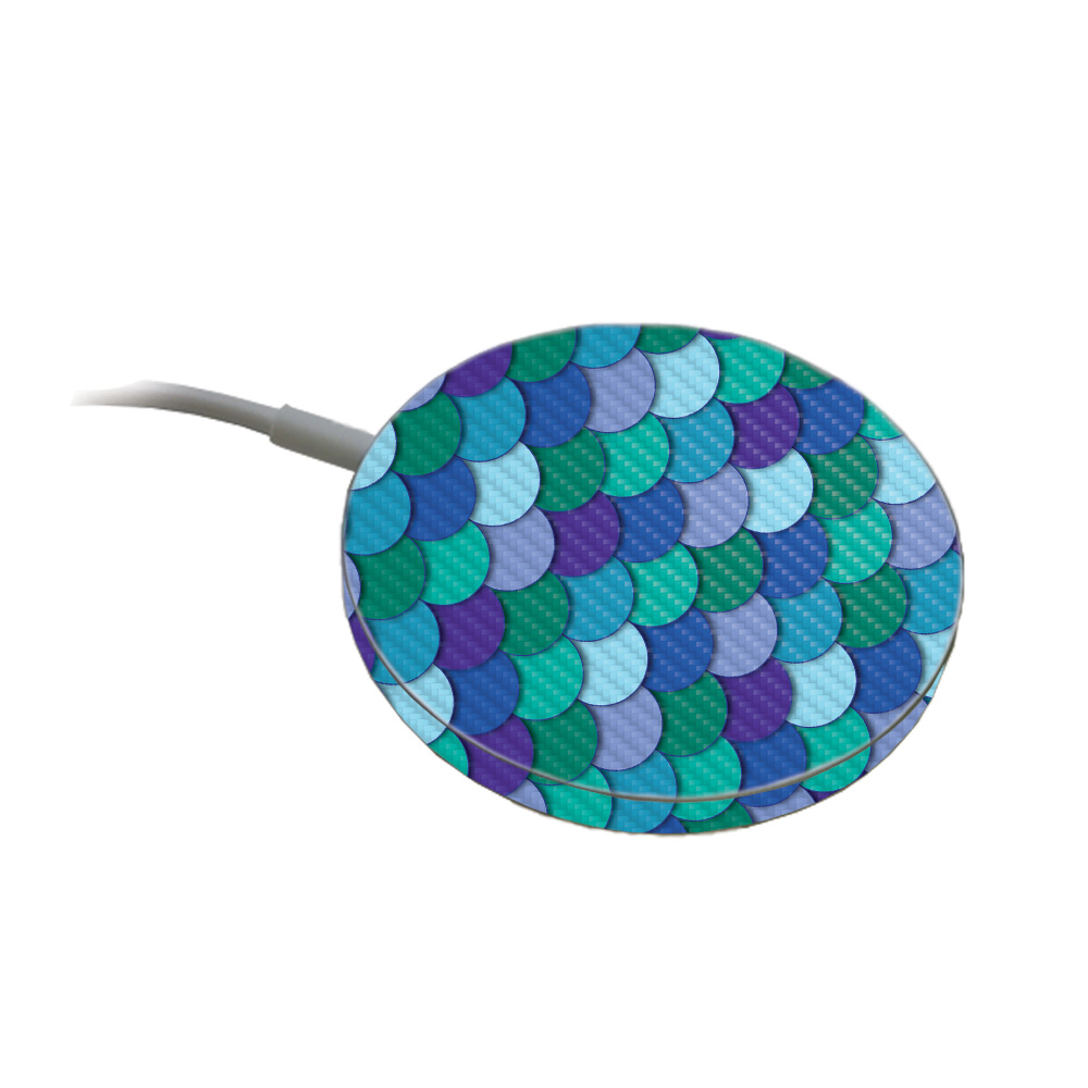 MightySkins CF-APMACH-Blue Scales Carbon Fiber Skin Compatible with Apple MagSafe Charger - Blue Scales