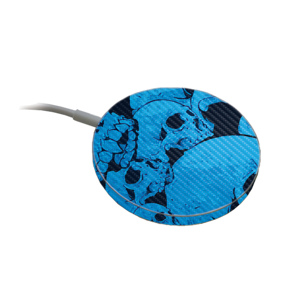 MightySkins CF-APMACH-Blue Skulls Carbon Fiber Skin Compatible with Apple MagSafe Charger - Blue Skulls