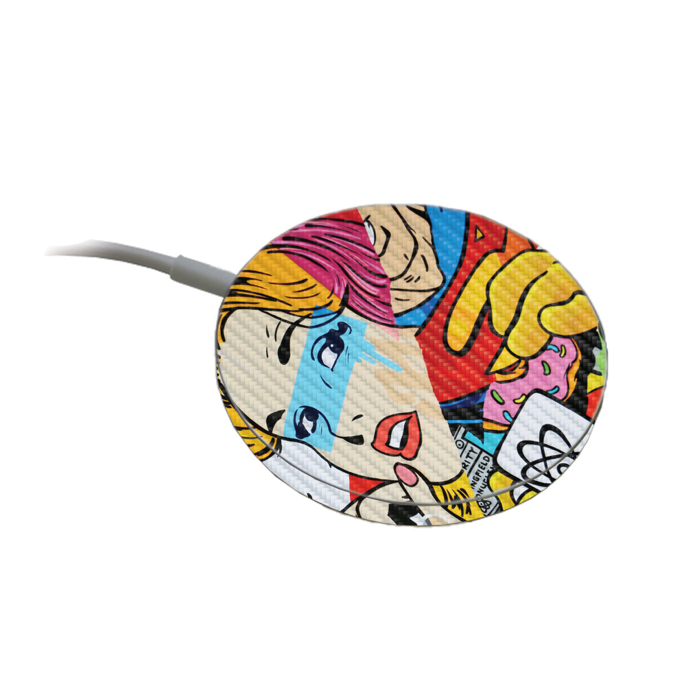 MightySkins CF-APMACH-Cartoon Mania Carbon Fiber Skin Compatible with Apple MagSafe Charger - Cartoon Mania