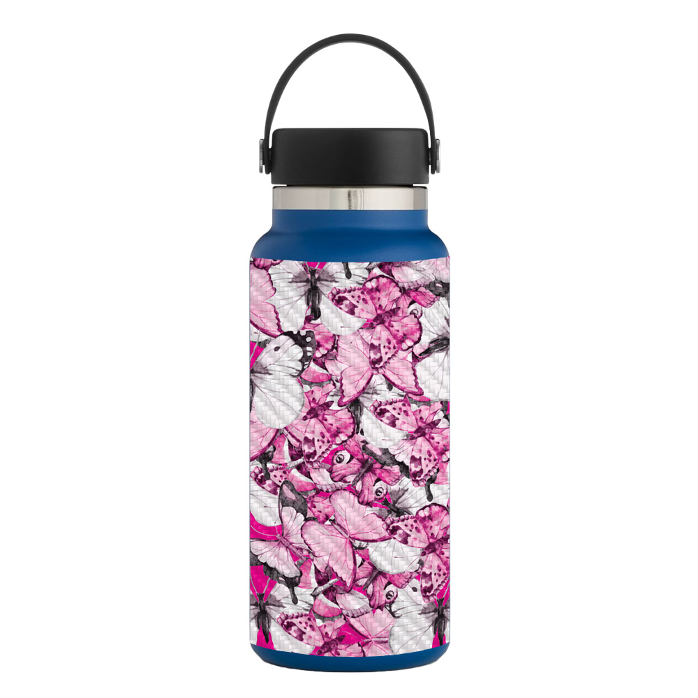 MightySkins CF-HFWI32-Butterflies Carbon Fiber Skin for Hydro Flask 32 oz Wide Mouth - Butterflies