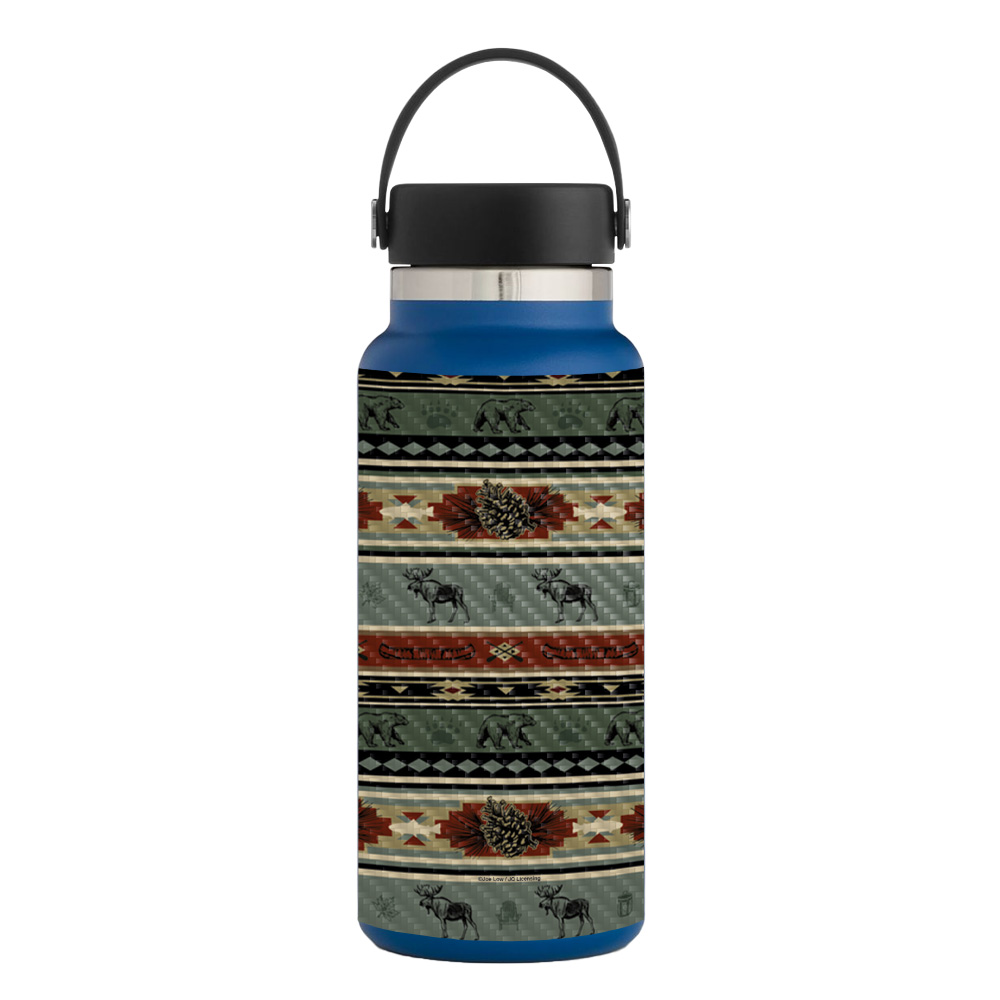 MightySkins CF-HFWI32-Cabin Stripes Carbon Fiber Skin for Hydro Flask 32 oz Wide Mouth - Cabin Stripes