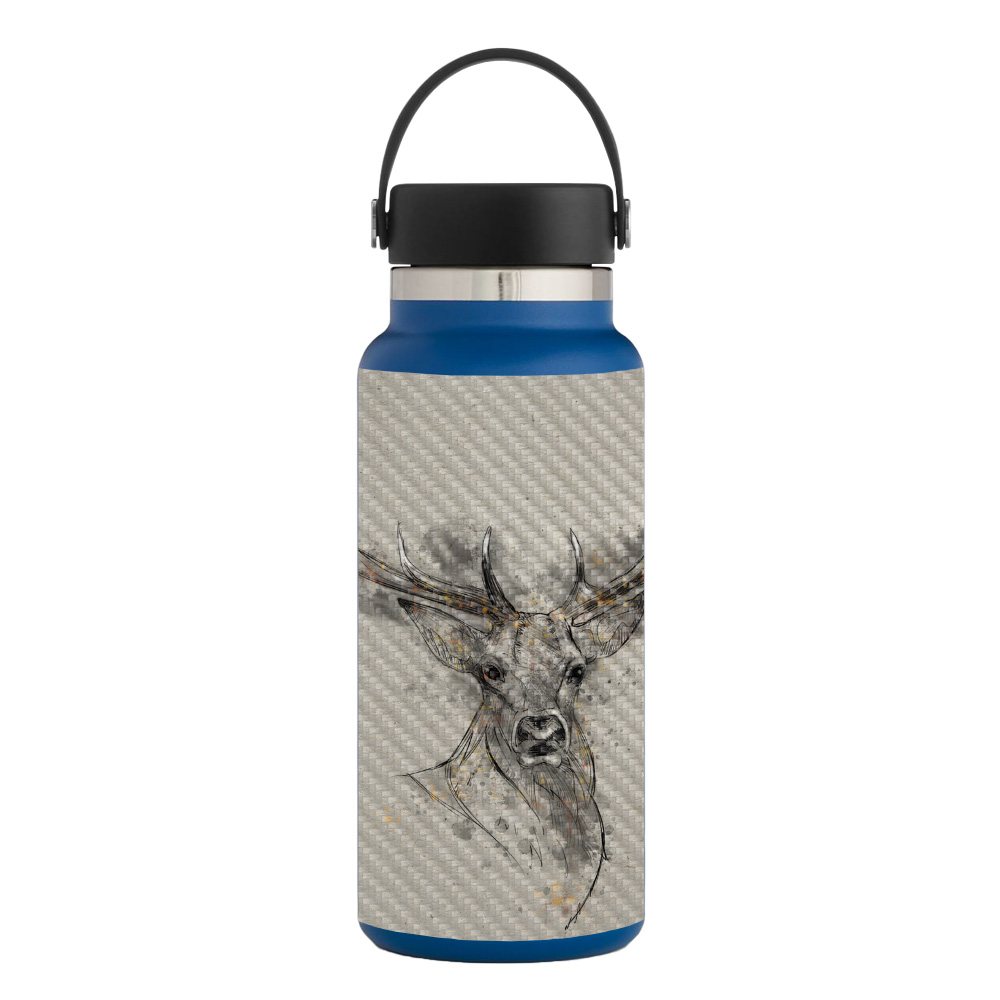 MightySkins CF-HFWI32-Ink Buck Carbon Fiber Skin for Hydro Flask 32 oz Wide Mouth - Ink Buck