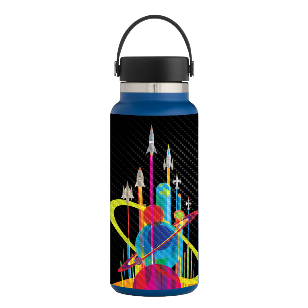 MightySkins CF-HFWI32-Space Poster Carbon Fiber Skin for Hydro Flask 32 oz Wide Mouth - Space Poster