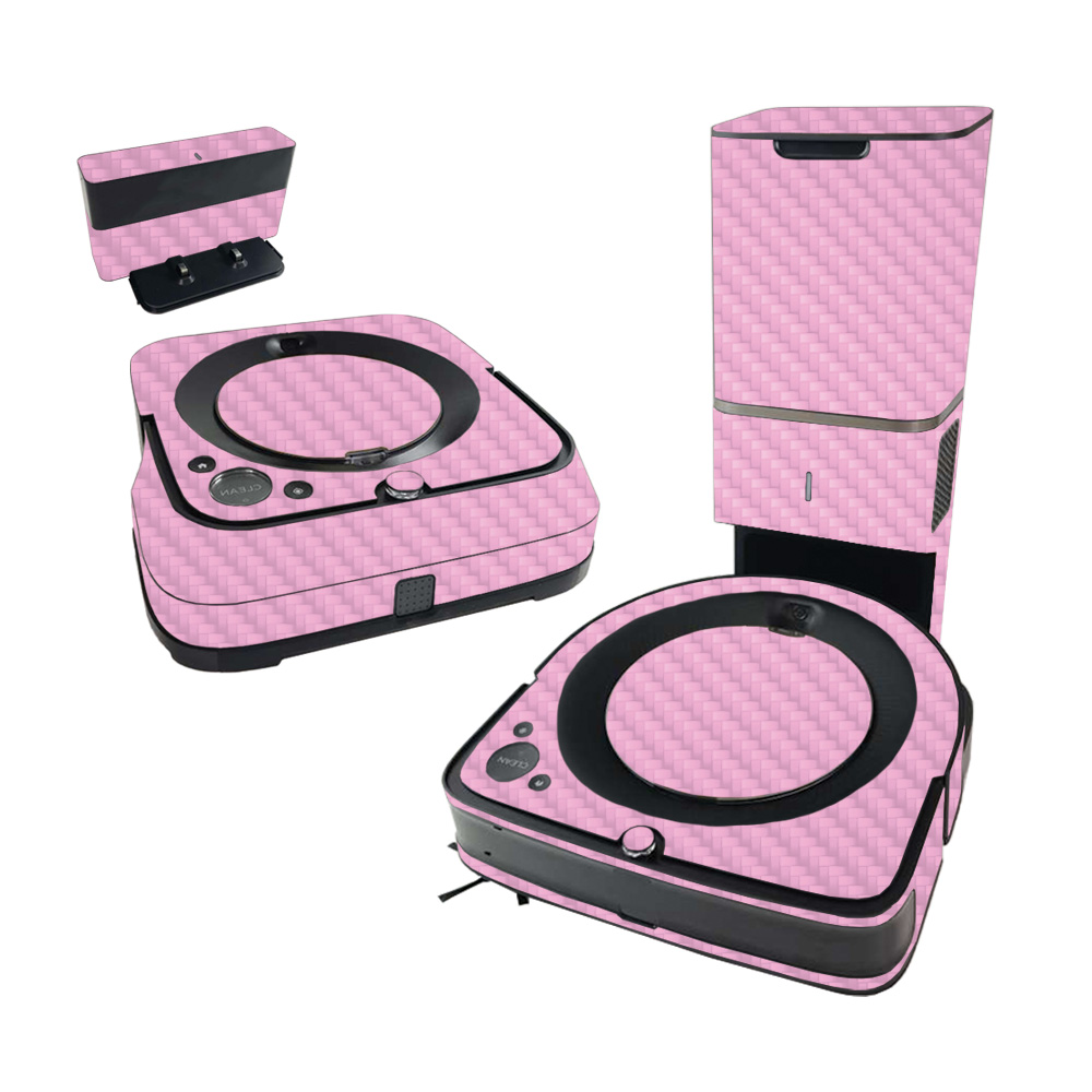 MightySkins CF-IRROS9PLBUN-Solid Pink Carbon Fiber Skin for iRobot Roomba s9 Plus Vacuum & Braava Jet m6 Bundle - Solid