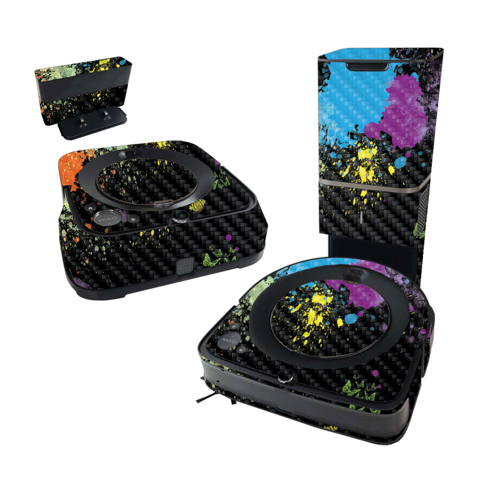 MightySkins CF-IRROS9PLBUN-Splatter Carbon Fiber Skin for iRobot Roomba s9 Plus Vacuum & Braava Jet m6 Bundle - Splatter