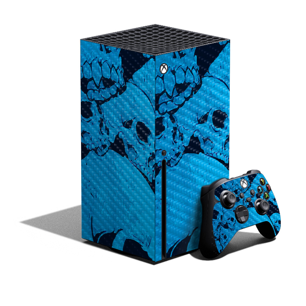 MightySkins CF-MIXBSERXCMB-Blue Skulls Carbon Fiber Skin for XBOX Series X Bundle - Blue Skulls