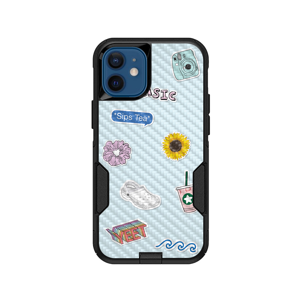 MightySkins CF-OTCIP12MI-VSCO2 Carbon Fiber Skin for OtterBox Commuter iPhone 12 Mini - VSCO Girl