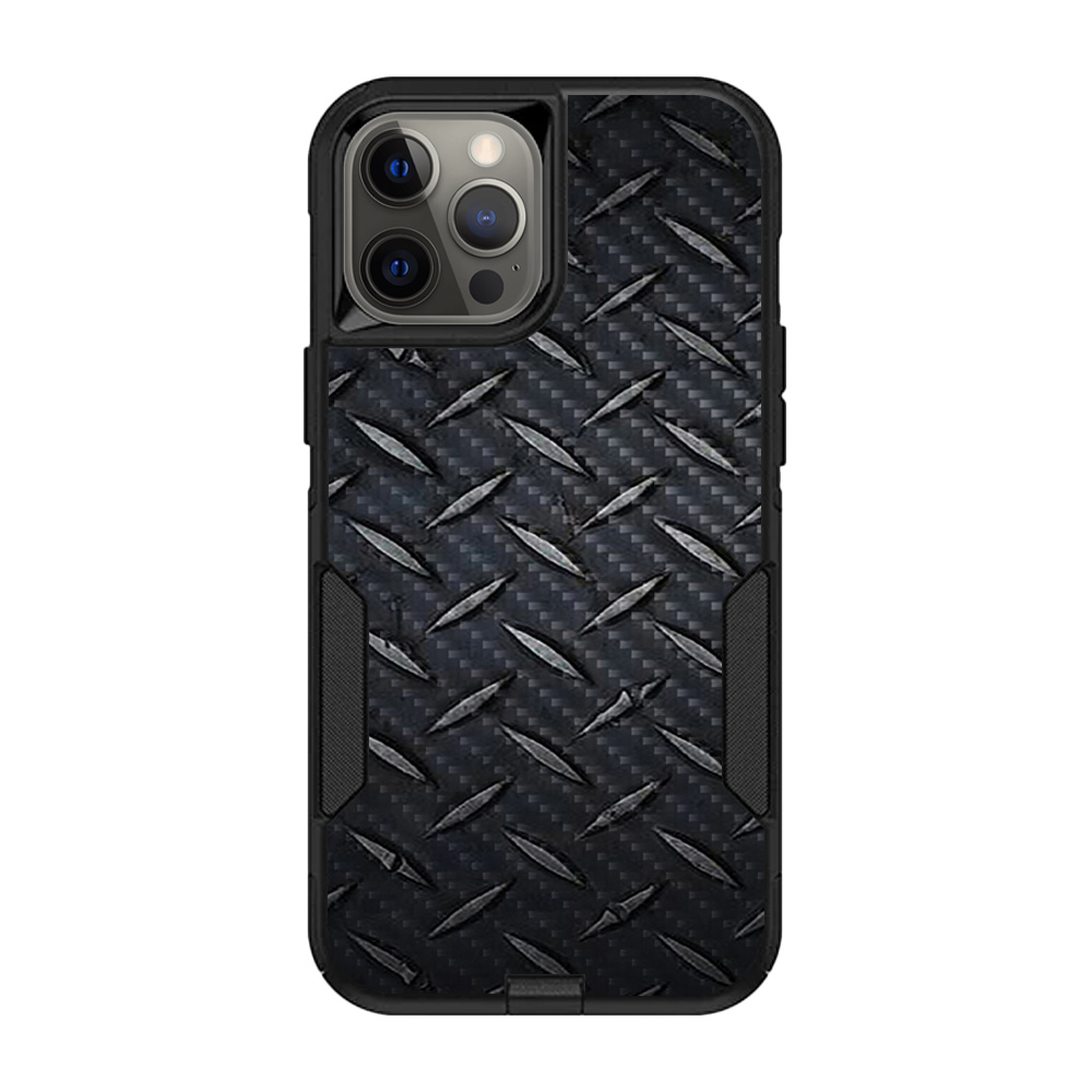 MightySkins CF-OTCIP12PRM-Black Diamond Plate Carbon Fiber Skin for OtterBox Commuter iPhone 12 Pro Max - Black Diamond