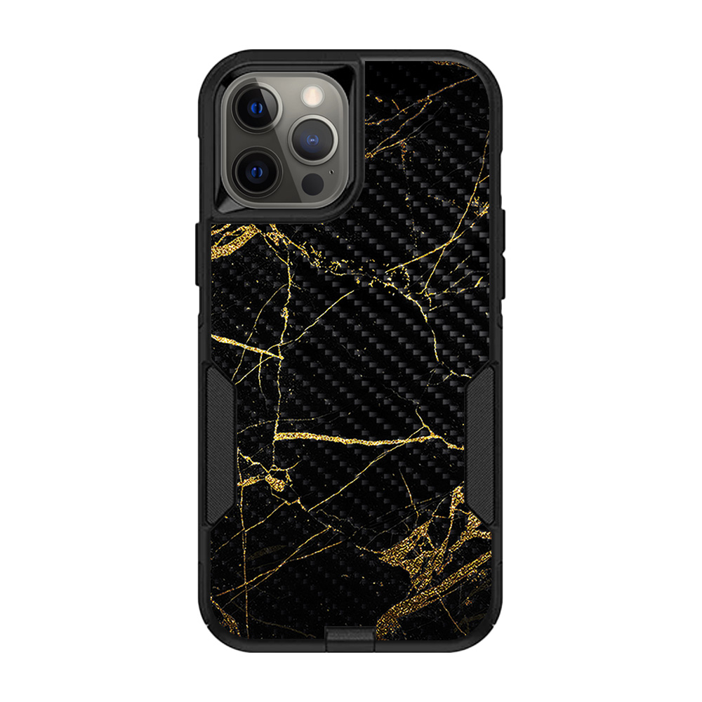 MightySkins CF-OTCIP12PRM-Black Gold Marble Carbon Fiber Skin for OtterBox Commuter iPhone 12 Pro Max - Black Gold Marbl