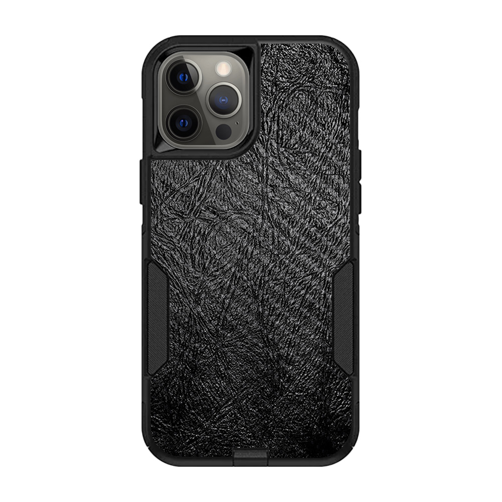 MightySkins CF-OTCIP12PRM-Black Leather Carbon Fiber Skin for OtterBox Commuter iPhone 12 Pro Max - Black Leather