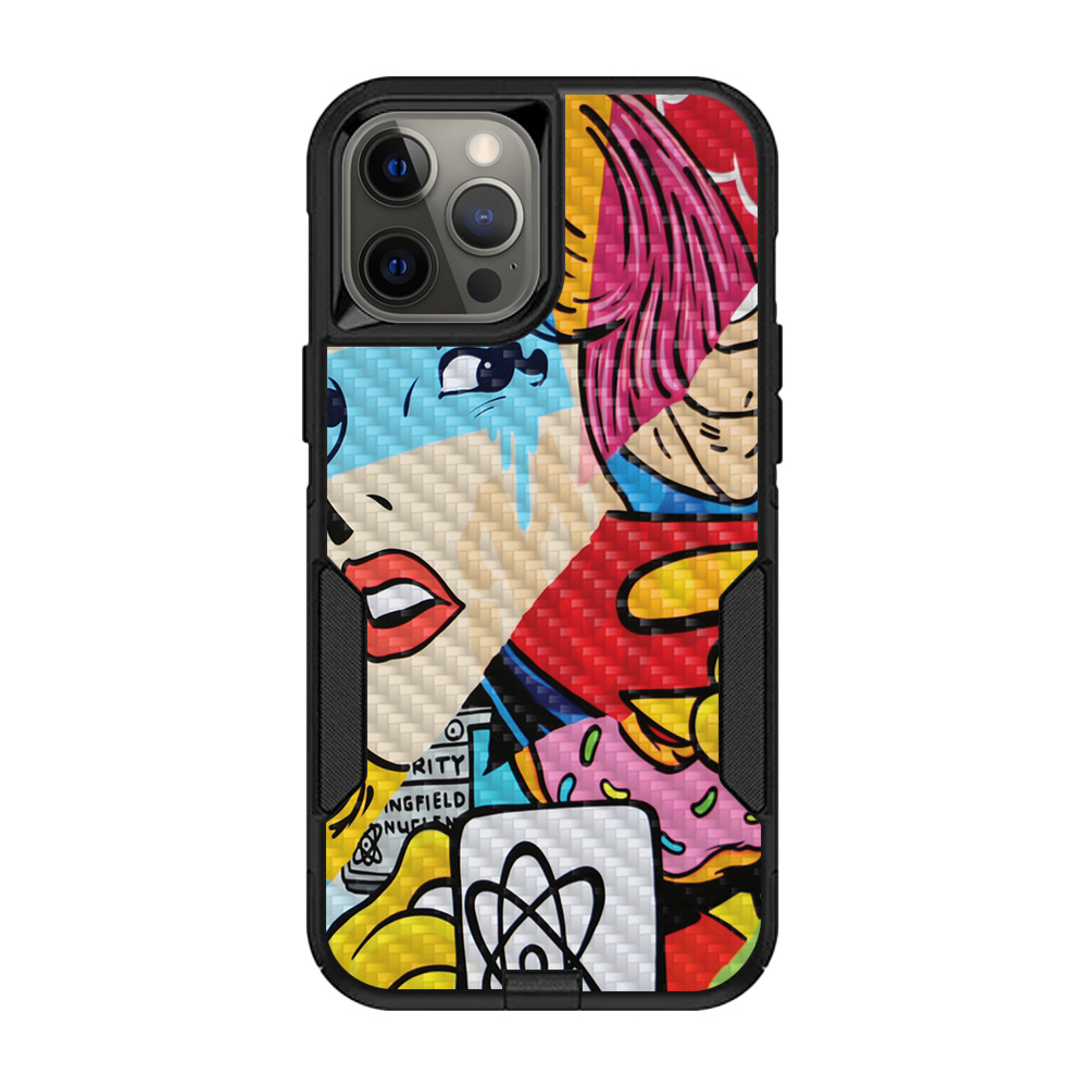 MightySkins CF-OTCIP12PRM-Cartoon Mania Carbon Fiber Skin for OtterBox Commuter iPhone 12 Pro Max - Cartoon Mania