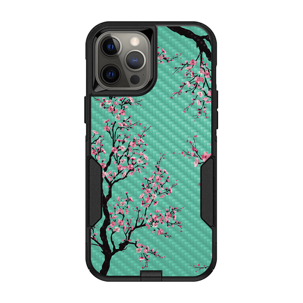 MightySkins CF-OTCIP12PRM-Cherry Blossom Tree Carbon Fiber Skin for OtterBox Commuter iPhone 12 Pro Max - Cherry Blossom