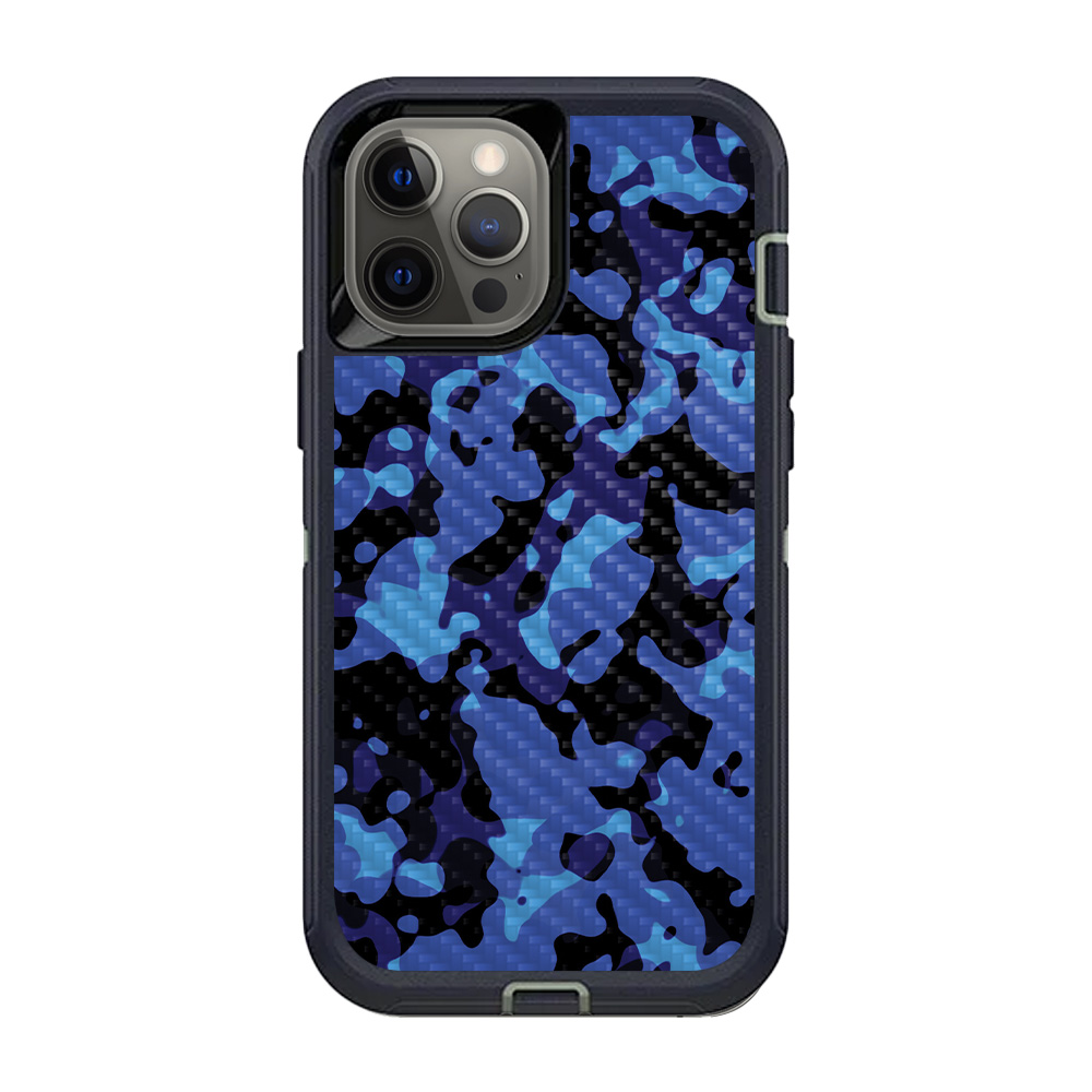 MightySkins CF-OTDIP12PRM-Blue Modern Camo Carbon Fiber Skin for OtterBox Defender iPhone 12 Pro Max - Blue Modern Camo