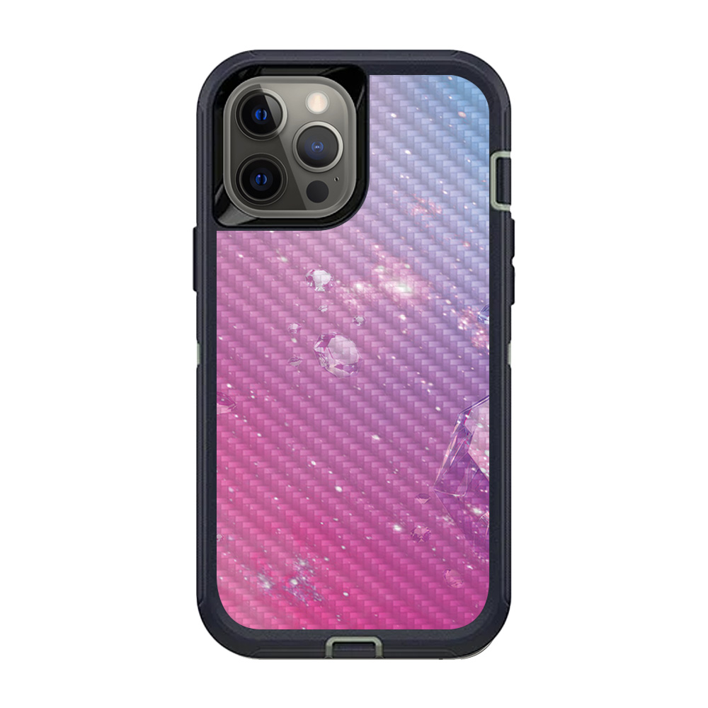 MightySkins CF-OTDIP12PRM-Pink Diamond Carbon Fiber Skin for OtterBox Defender iPhone 12 Pro Max - Pink Diamond