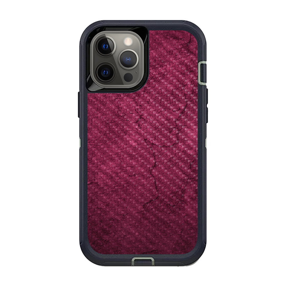 MightySkins CF-OTDIP12PRM-Pink Gravel Carbon Fiber Skin for OtterBox Defender iPhone 12 Pro Max - Pink Gravel