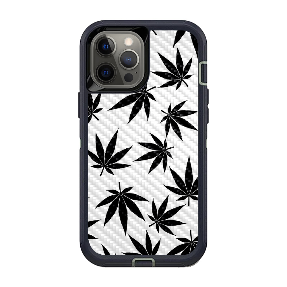 MightySkins CF-OTDIP12PRM-Pot Leaves Black Carbon Fiber Skin for OtterBox Defender iPhone 12 Pro Max - Pot Leaves Black
