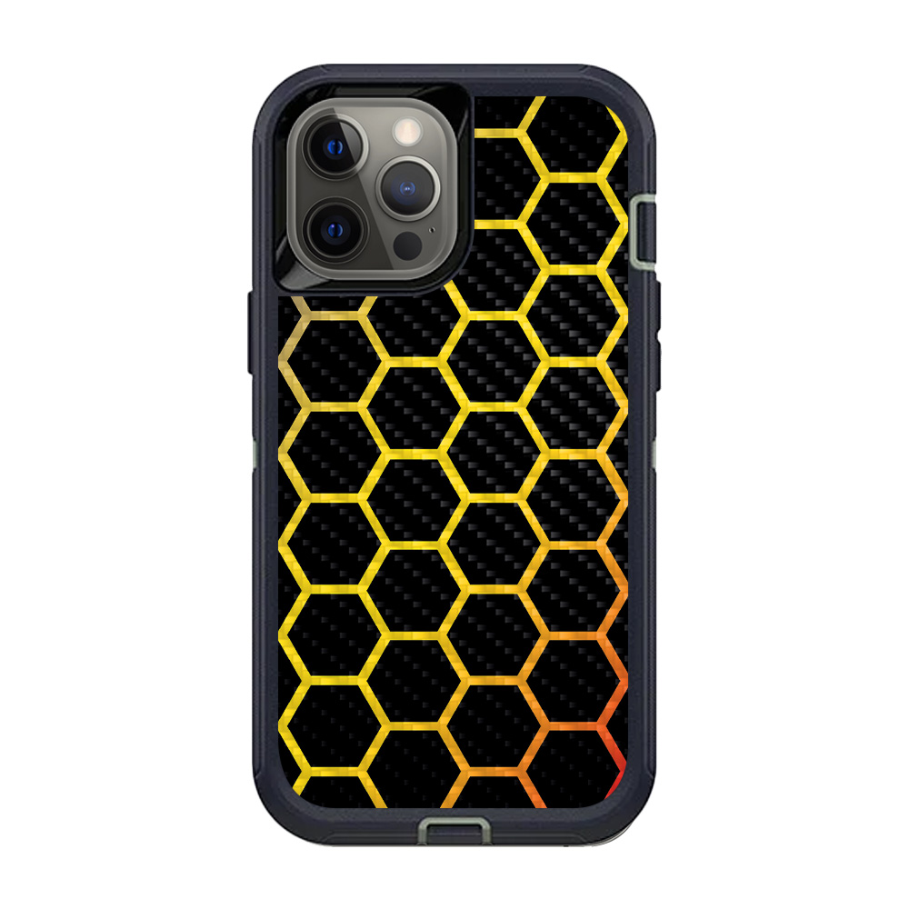 MightySkins CF-OTDIP12PRM-Primary Honeycomb Carbon Fiber Skin for OtterBox Defender iPhone 12 Pro Max - Primary Honeycom