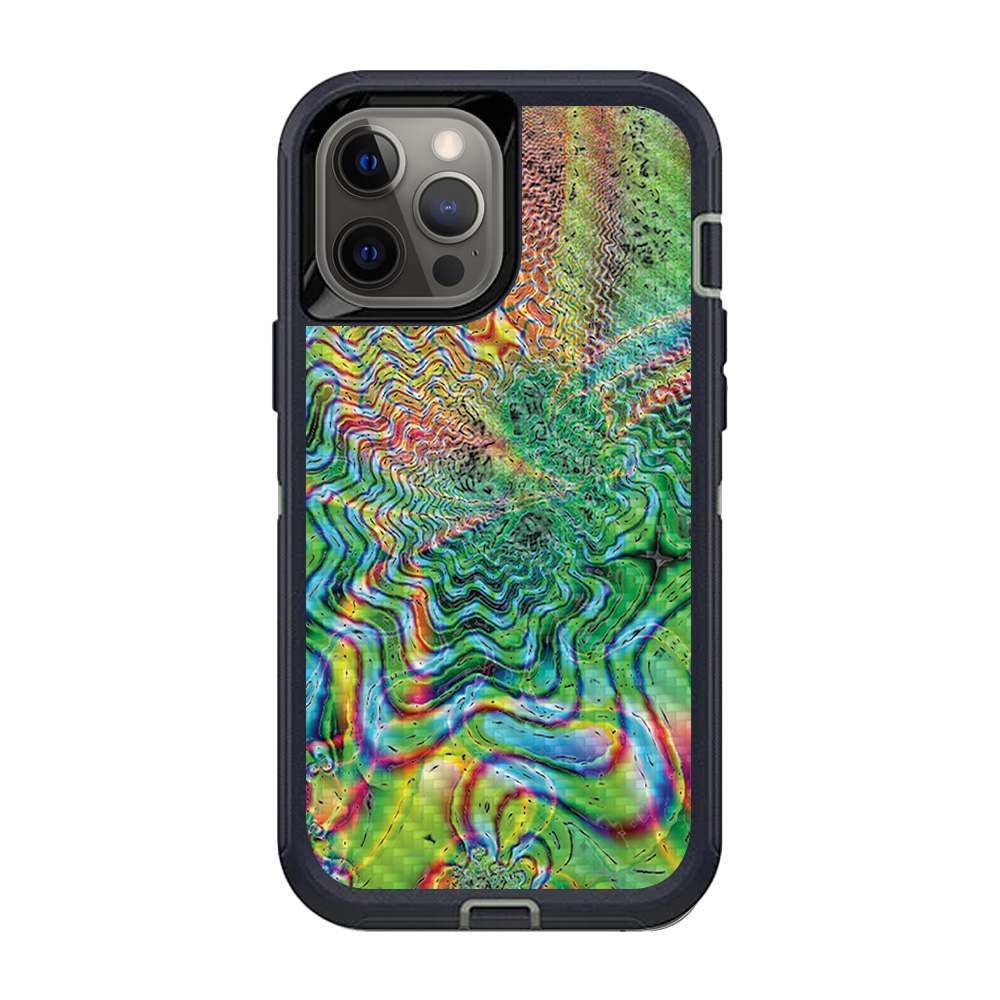 MightySkins CF-OTDIP12PRM-Psychedelic Carbon Fiber Skin for OtterBox Defender iPhone 12 Pro Max - Psychedelic