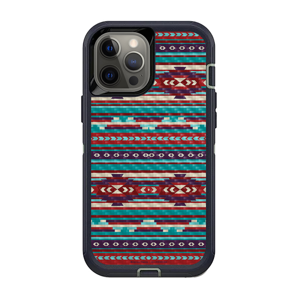 MightySkins CF-OTDIP12PRM-Southwest Stripes Carbon Fiber Skin for OtterBox Defender iPhone 12 Pro Max - Southwest Stripe