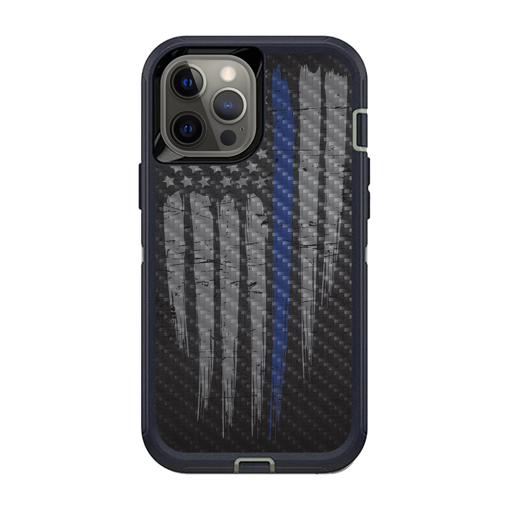 MightySkins CF-OTDIP12PRM-Thin Blue Line Carbon Fiber Skin for OtterBox Defender iPhone 12 Pro Max - Thin Blue Line