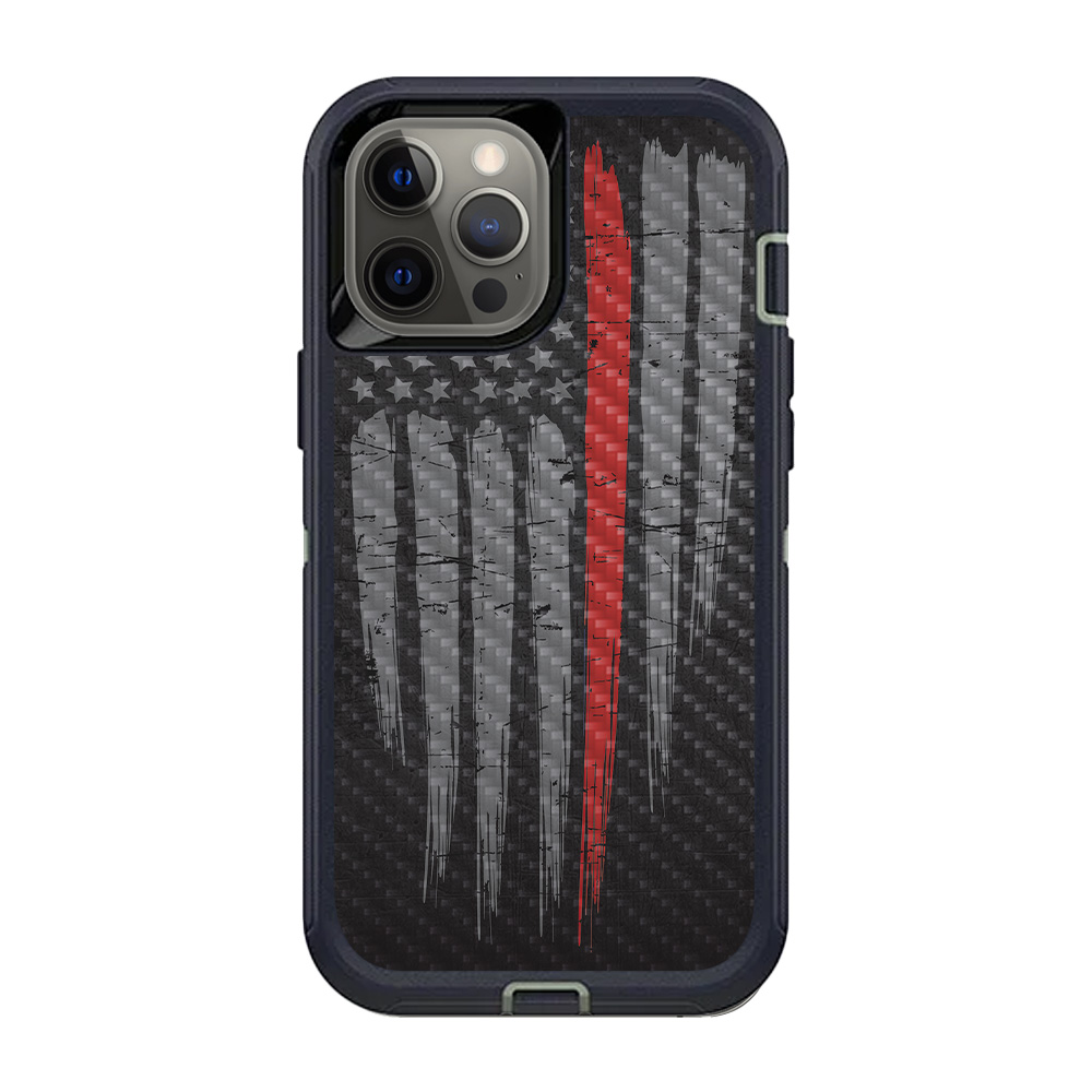 MightySkins CF-OTDIP12PRM-Thin Red Line Carbon Fiber Skin for OtterBox Defender iPhone 12 Pro Max - Thin Red Line