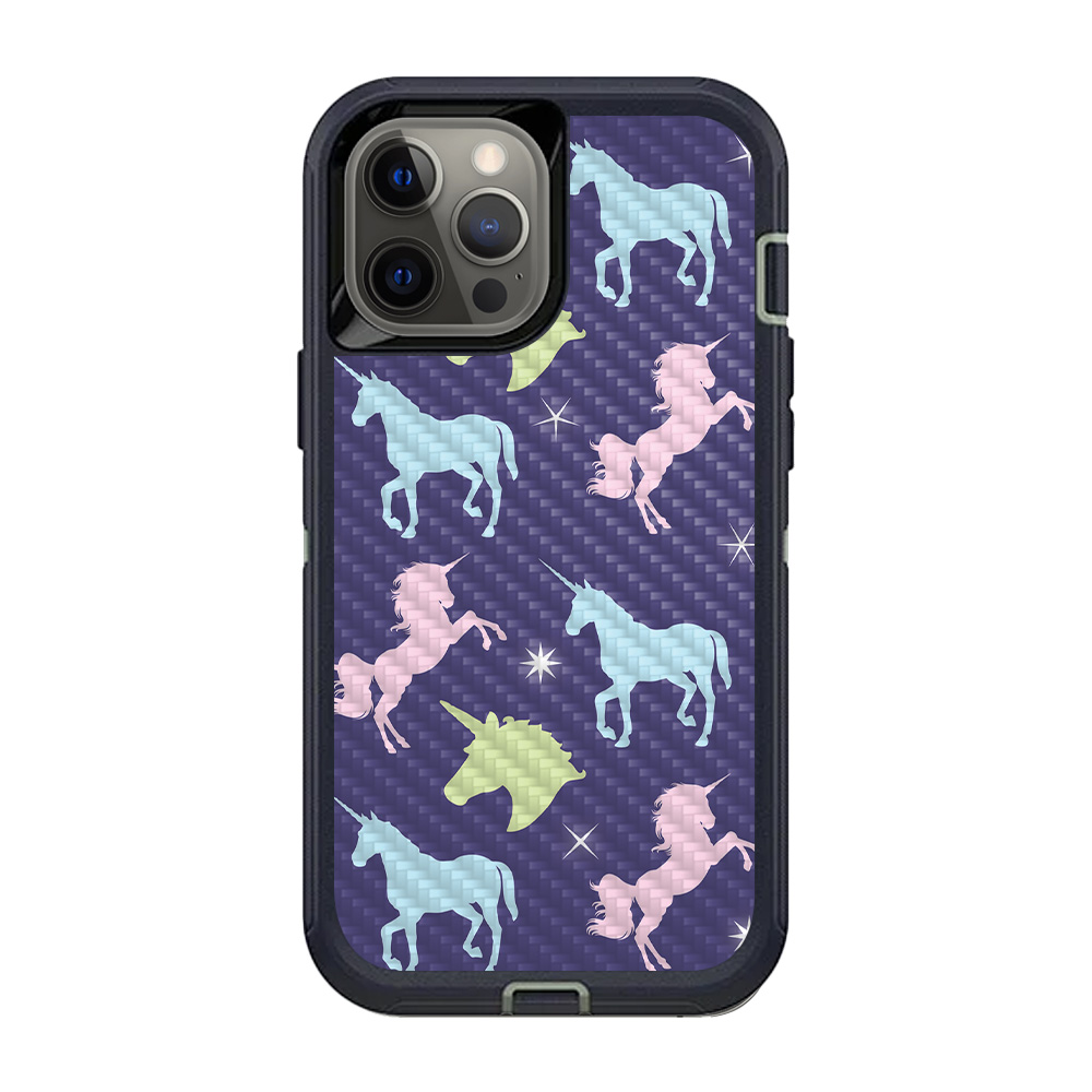 MightySkins CF-OTDIP12PRM-Unicorn Dream Carbon Fiber Skin for OtterBox Defender iPhone 12 Pro Max - Unicorn Dream