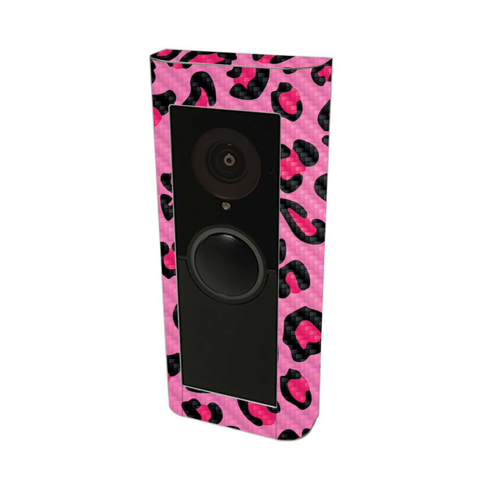 MightySkins CF-RIVDPR2-Pink Leopard Carbon Fiber Skin Compatible with Ring Video Doorbell Pro 2 - Pink Leopard