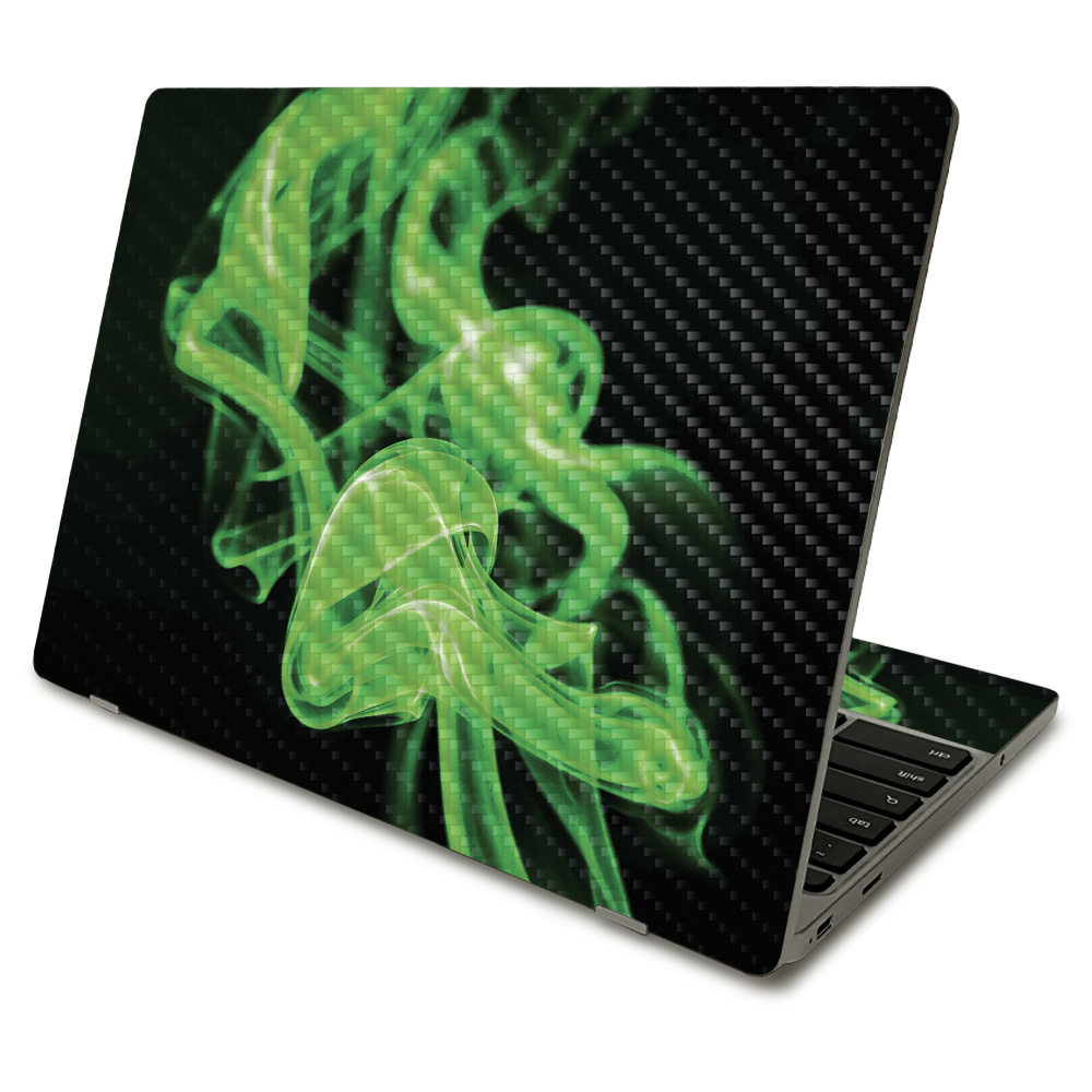 MightySkins CF-SACHBO411-Green Flames Carbon Fiber Skin Compatible with Samsung Chromebook 4 2021 11.6 in. - Green Flame