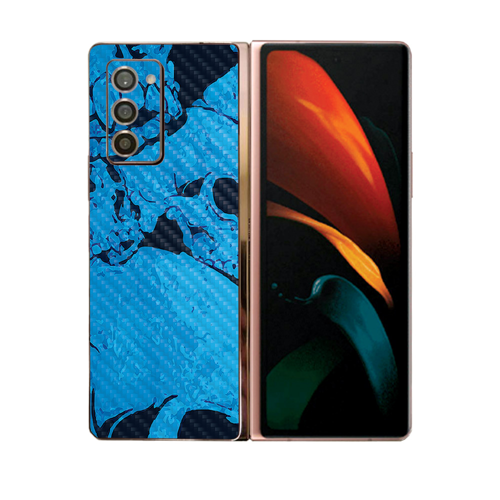 MightySkins CF-SAGZFO2-Blue Skulls Carbon Fiber Skin for Samsung Galaxy Z Fold 2 - Blue Skulls