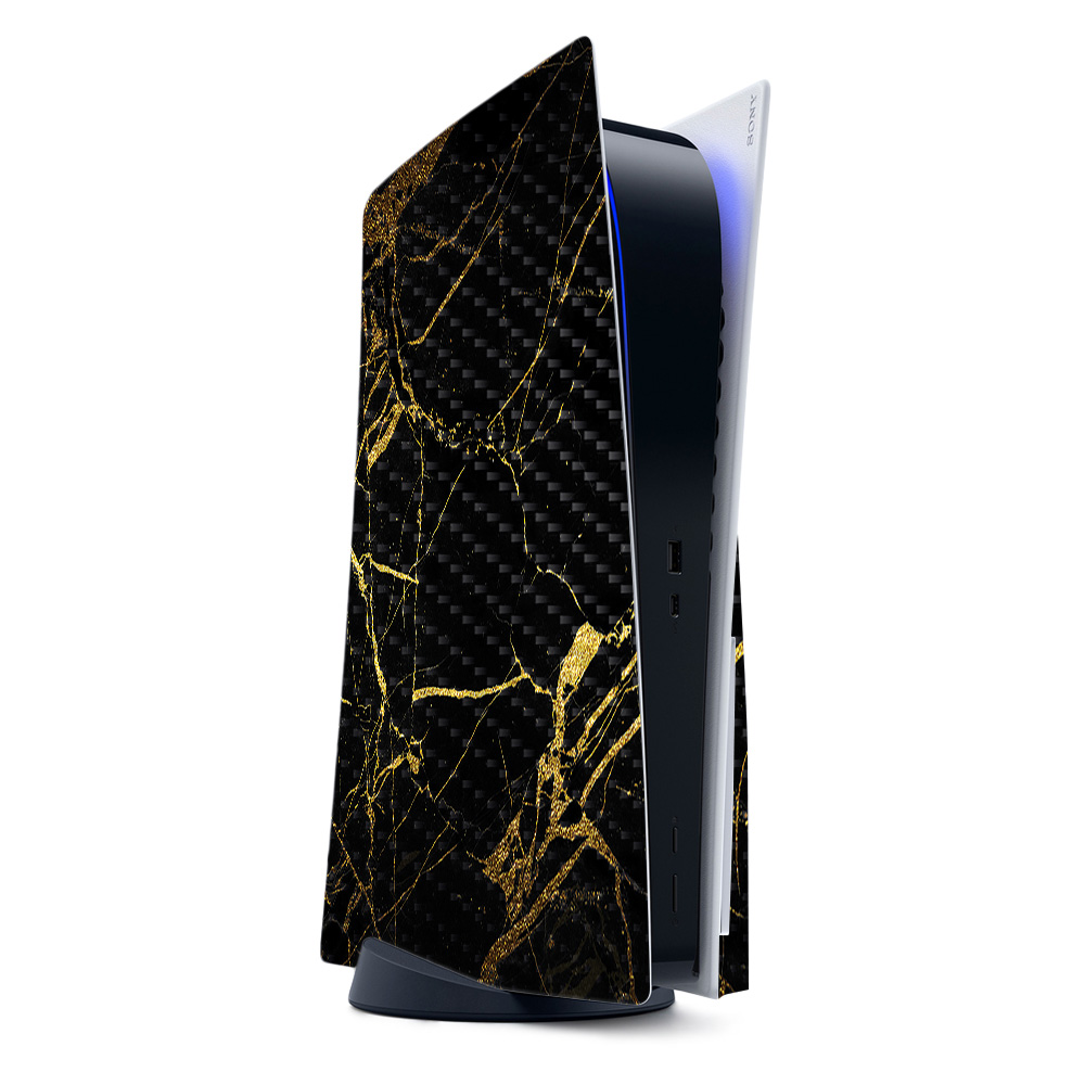 MightySkins CF-SOPS5-Black Gold Marble Carbon Fiber Skin for PS5 & Playstation 5 - Black Gold Marble