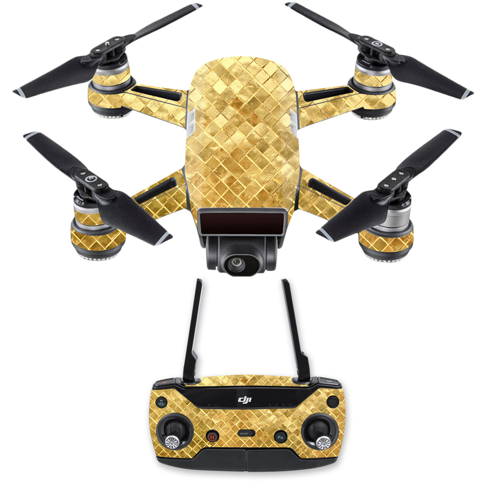 MightySkins DJSPCMB-Gold Tiles Skin Decal for DJI Spark Mini Drone Combo Sticker - Gold Tiles